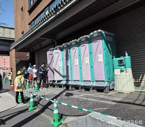 有一個細微處,集結區旁的移動衛生間,兩端設置了進出賽道的階梯,方便跑者。他們的移動衛生間,沒有上賽道的。