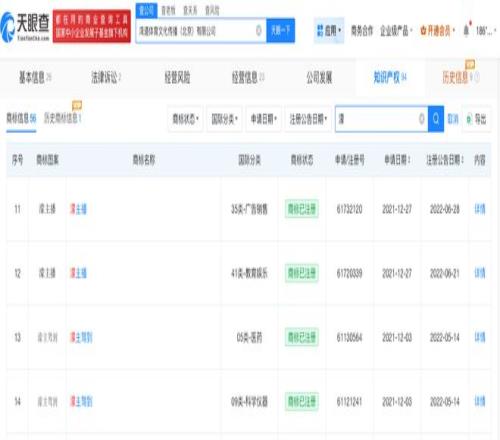 其中,灣道體育文化傳播(北京)有限公司由王濛持股89%。該公司還持有"王濛""濛主播""濛主駕到"等多枚商標(biāo)。