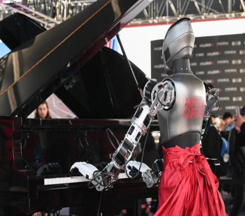 2026年3月13日,上海汽車文化節上,一個機器人正在彈鋼琴。