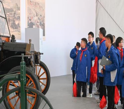 2026年3月13日,一群學生正在通過展覽了解“汽車百年發展史”。本文均為澎湃新聞記者 吳棟 圖