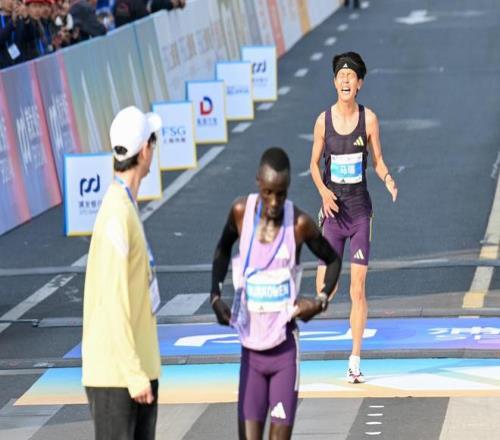 在男子組的競爭中,馬瑞在15公里處腳部磨破的情況下,硬是靠著意志力拼到終點,最終以1小時02分49秒的成績斬獲男子國內冠軍,刷新個人半馬PB的同時,也創造了這條賽道的國內男子選手最好成績。