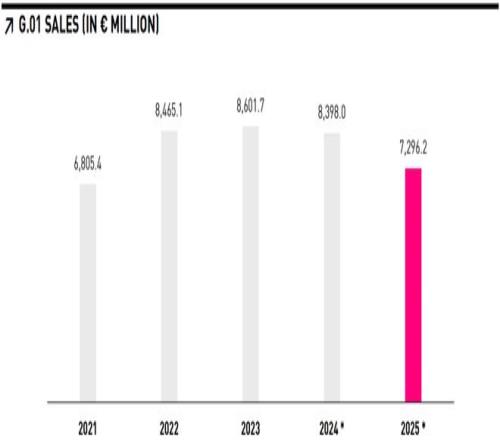 2025財年,彪馬全年銷售額約為73億歐元,按匯率調整計算同比下降約8%。在全球運動用品行業仍處于增長周期的背景下,這樣的跌幅本身就顯得不尋常。更嚴重的是盈利端的迅速惡化。