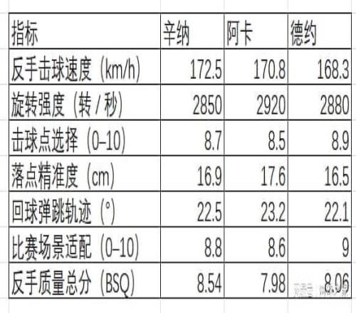 三、辛納、阿卡、德約三位球員反手質量指標比較分析