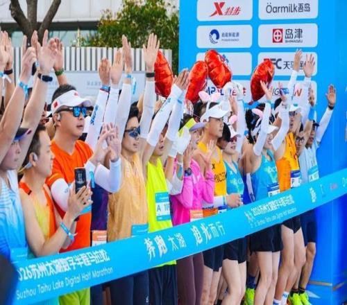 清晨六點半,太湖邊的晨霧還沒散盡,馬山游客中心附近已經熱鬧起來。五千名跑者正在集結,有人在做拉伸,有人在互相拍照,有人在檢查鞋帶。他們的號碼布上印著同一個logo——2026蘇州太湖數字半程馬拉松。