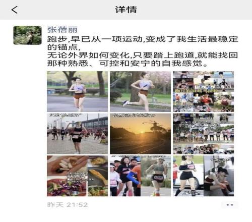 但“日常”并不意味著“平淡”。十年前,她開始跑步,起初是為了健康,后來慢慢發(fā)現,跑步成了她生活的“錨點”——因為要早起跑步,所以必須早睡;因為要跑得更輕盈,所以開始注意飲食;因為跑圈里認識了同頻的朋友,社交圈也變得更加積極正向。