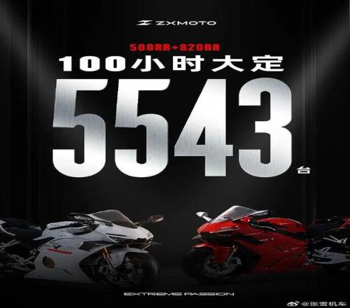2026年3月,張雪機車公布了一個數字:500RR和820RR兩款車型,在限時100小時的大定活動中,累計訂單超過5500臺,創下了國產中排量仿賽車型的預訂紀錄。