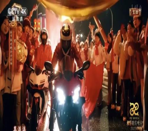 2025年央視春晚重慶分會場,身披紅綢的張雪機車500RR疾馳駛過千廝門大橋,成為了數十年來首次登上央視春晚的摩托車品牌。
