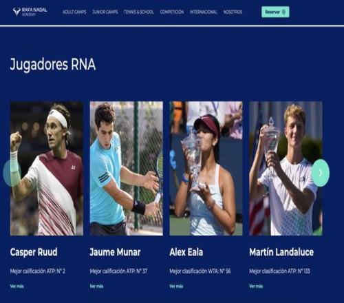 在RNA的栽培下,俄羅斯選手阿麗娜·科爾涅娃、西班牙新星蘭達魯斯贏得了大滿貫青少年組的冠軍,登頂過青少年世界第一。阿根廷的索拉納·謝拉因為紅土招牌而選擇了這里,14歲就入學(xué)的阿卜杜拉·謝爾拜赫成為了約旦首個擁有ATP排名的選手,香港最成功的網(wǎng)球選手黃澤林同樣也在納達爾網(wǎng)校學(xué)習(xí)過……