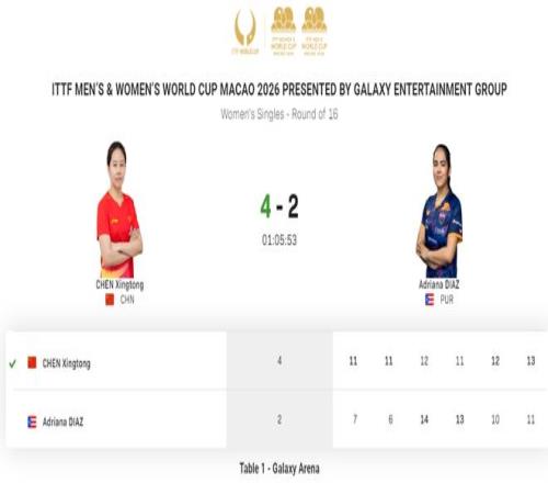 陳幸同在女單小組賽表現(xiàn)出色,兩場比賽以兩個3比0擊敗了安德烈婭·德拉戈曼和葉伊恬,輕松進(jìn)入16強(qiáng)淘汰賽。