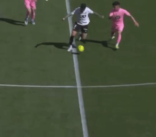 第二個場景:瓦倫西亞球員明顯控球并向隊友傳球,之后塞爾塔球員伸腿插入其技術動作的行進路線。瓦倫西亞球員自然落地支撐腳時踩到了對方。