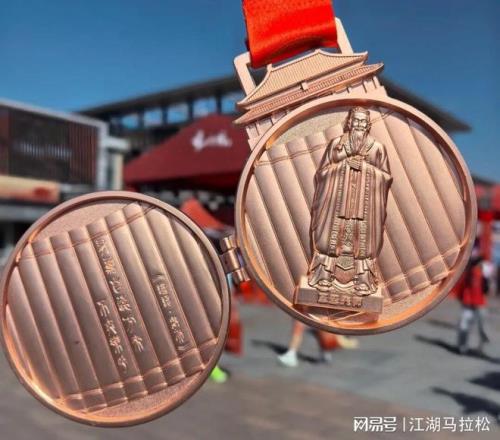 完賽獎牌上,也彰顯了孔孟之鄉的底蘊。能打開的獎牌不只好玩,還有可以轉動、拿下來的孔子造像,另一面則有《論語?學而》中的名句“有朋自遠方來,不亦說乎”。