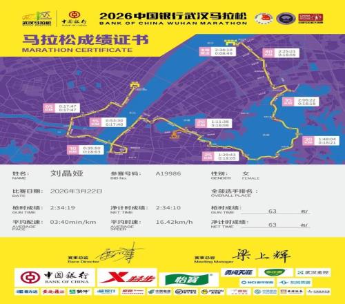 2:34:10,國內第三,這是她在武漢交出的成績單,PB幅度超過7分鐘。