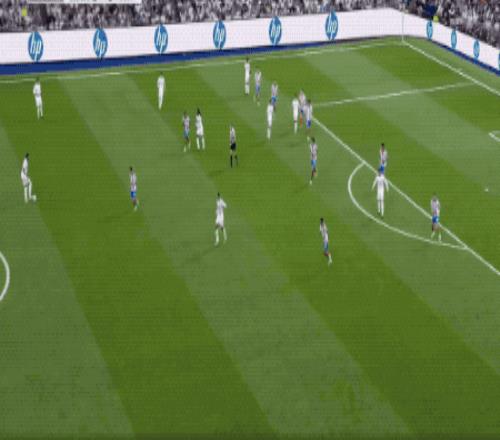 第22分鐘,皇馬禁區弧頂附近明顯漏人,馬丁內斯無人盯防起腳遠射,皮球稍稍偏出,盧寧對防守球員相當不滿。