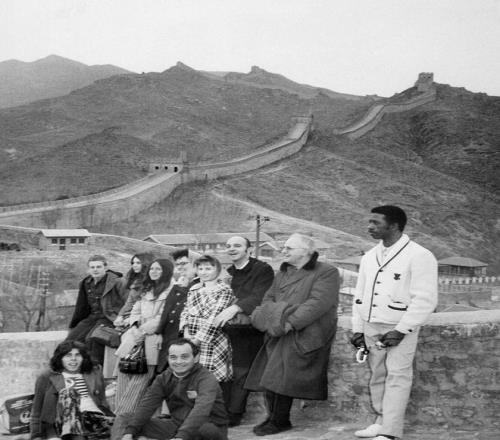 1971年4月,北京,美國乒乓球代表團隊員們游覽長城。視覺中國 圖