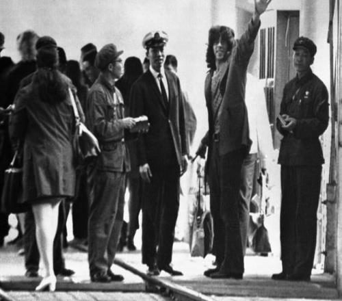 1971年4月10日,美國乒乓球代表團受邀訪華,美國運動員格倫·科恩揮著手從中國海關入境。視覺中國 圖