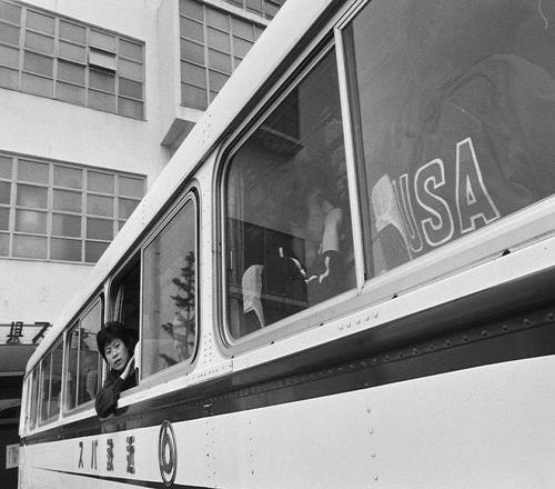故事的發生在4月4日。當天下午訓練結束后,19歲的美國男選手格倫·科恩走出體育館,誤打誤撞地坐上了中國乒乓球隊的訓練大巴。黃頭發、藍眼睛的科恩,在當時的中國人看來十分扎眼。而他這一轉身,運動服背后的國家字母露了出來:U.S.A.。此時的科恩面朝車門,顯得很尷尬。中國隊的所有隊員也面面相覷,也沒人敢搭腔。