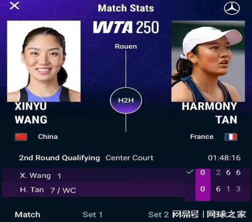 北京時間4月12日,WTA250法國魯昂站資格賽決勝輪,現中國一姐、世界排名第32位的王欣瑜在先失一盤的情況下及時調整,以2-6 6-1 6-3逆轉法國本土選手哈莫尼·譚,成功鎖定正賽席位。