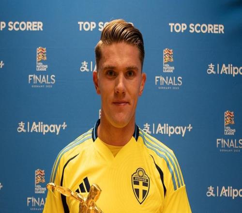 北京時間10月11日,在世預賽歐洲區第一階段小組賽第7輪瑞典主場與瑞士的比賽開始前,阿森納的鋒線球星哲凱賴什領取了2024-25賽季歐國聯最佳射手的獎杯。現年27歲的哲凱賴什在20